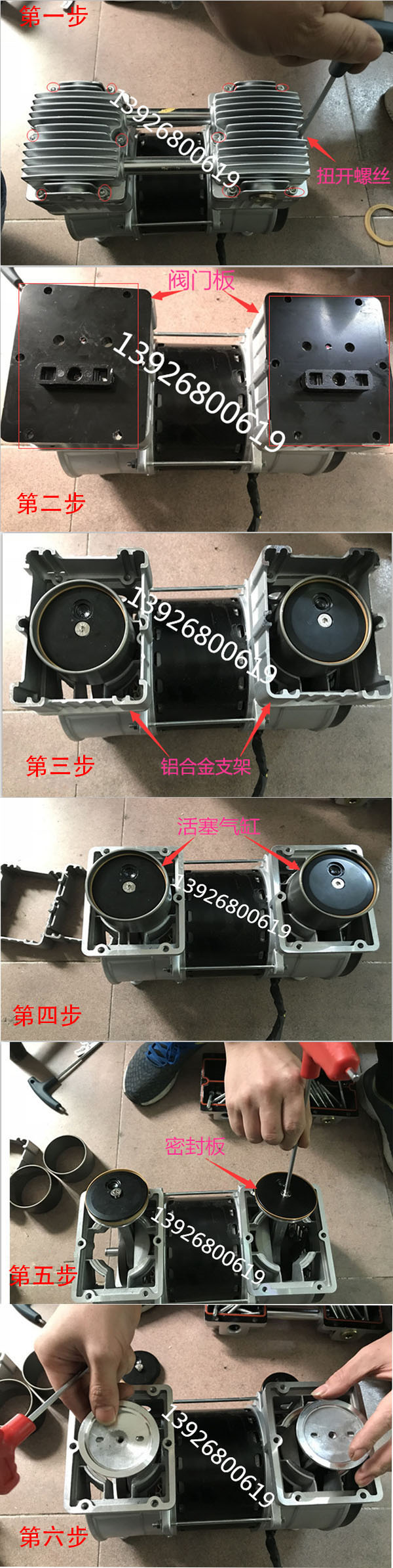 無(wú)油真空泵拆裝分析圖:第一步,鋁合蓋上的螺絲扭開(kāi),上面有12顆螺絲,螺絲扭掉打開(kāi)鋁合蓋子就可以看到閥門板。第二步,可以直接把閥門板拿下來(lái),就可以看到活塞氣缸了。第三步,把上面的鋁合支架可以直接拿下來(lái)。第四步,可以看到活塞氣缸了,可以直接拔下來(lái)。第五步,接下來(lái)是最后一步了,看到的是皮碗,把上面的螺絲妞下來(lái),皮碗就可以拆下來(lái)了。這是一款JP-240無(wú)油真空泵拆圖,拆的過(guò)程中要注意,閥門板上面的那個(gè)鐵片,如果鐵片翹起來(lái)了,會(huì)導(dǎo)致真空泵漏氣沒(méi)真空。皮碗拆損壞了會(huì)導(dǎo)致沒(méi)有吸力,漏氣真空度下降。壞了會(huì)導(dǎo)致沒(méi)有吸力,漏氣真空度下降。