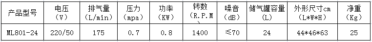 8.本產(chǎn)品為臺冠ML801-24無油空氣壓縮機,嚴禁加油潤滑。