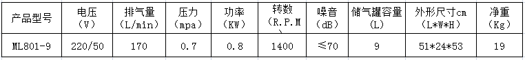 8.本產(chǎn)品為臺(tái)冠ML801-9無油空氣壓縮機(jī),嚴(yán)禁加油潤(rùn)滑。
