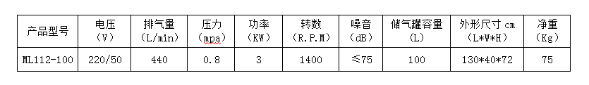 臺冠空氣壓縮機(jī),簡稱空壓機(jī),是工業(yè)現(xiàn)代化的產(chǎn)物,ML112-100壓縮機(jī)用途非常廣泛,主要表現(xiàn)在用于輪胎充氣、噴漆、潛艇沉浮、沉船打撈、海底石油勘探、氣墊船、食品、制藥工業(yè),利用壓縮空氣攪拌漿液、高壓空氣爆破采煤等等。
