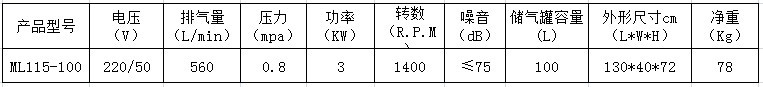 8.本產(chǎn)品為臺冠ML115-100無油空氣壓縮機(jī),嚴(yán)禁加油潤滑。