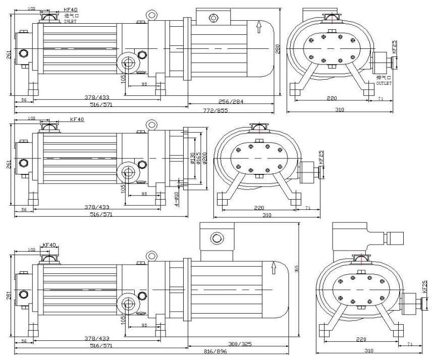 4.)風冷:采用風冷結構,使用更方便、簡單。 節約人力,維護周期長達數千至上萬小時,高可靠性低故障。 清洗方便,泵腔內若有污物,可打開進排氣口,開啟泵后倒入清洗劑即可清洗。